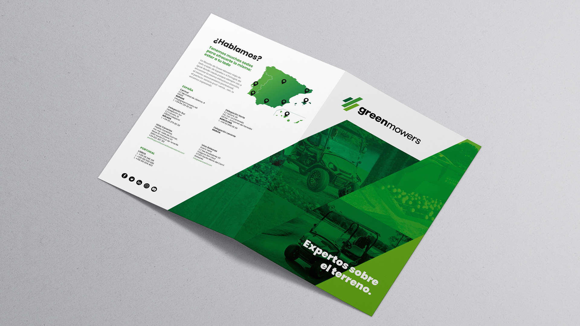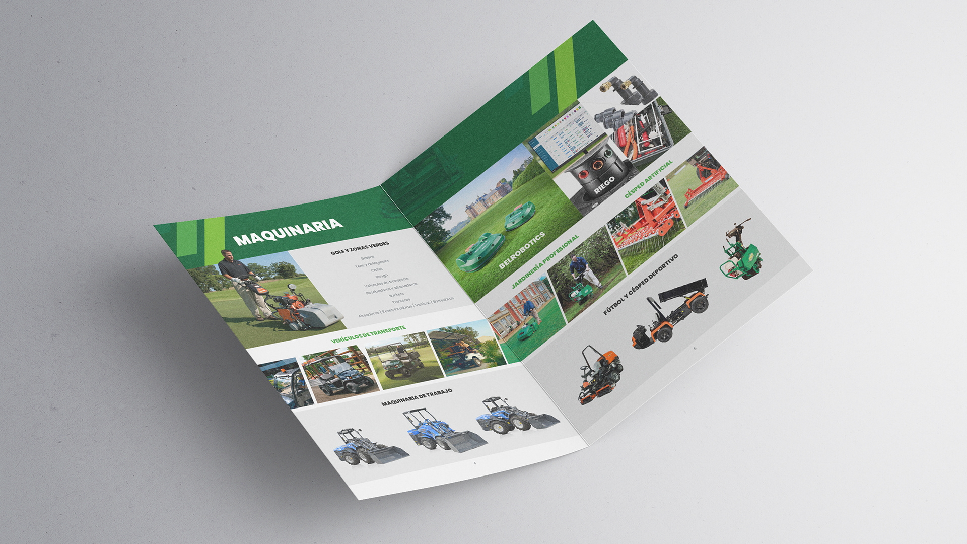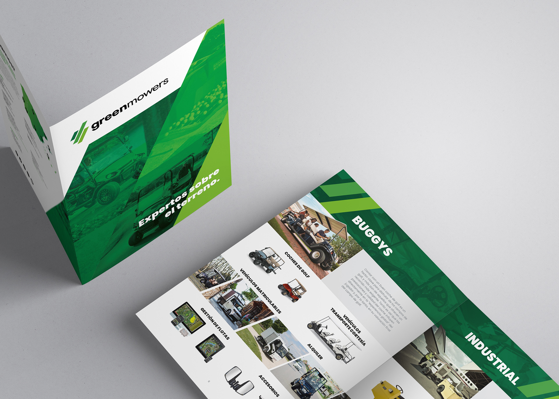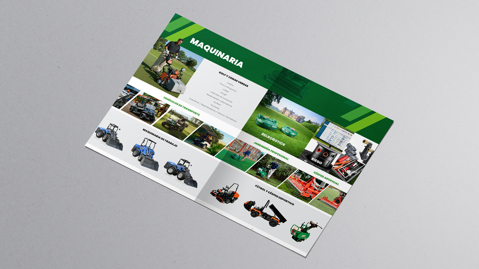 Diseño de catálogo para Green Mowers en colaboración con el equipo de JS Comunicación. Implementación de la línea gráfica y maquetación adaptada a las necesidades del cliente.