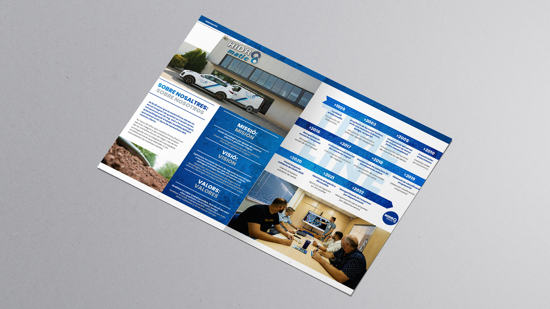 Diseño de catálogo para Hidromatic en colaboración con el equipo de JS Comunicación. Diseño y maquetación en catalán y español adaptada a las necesidades del cliente.