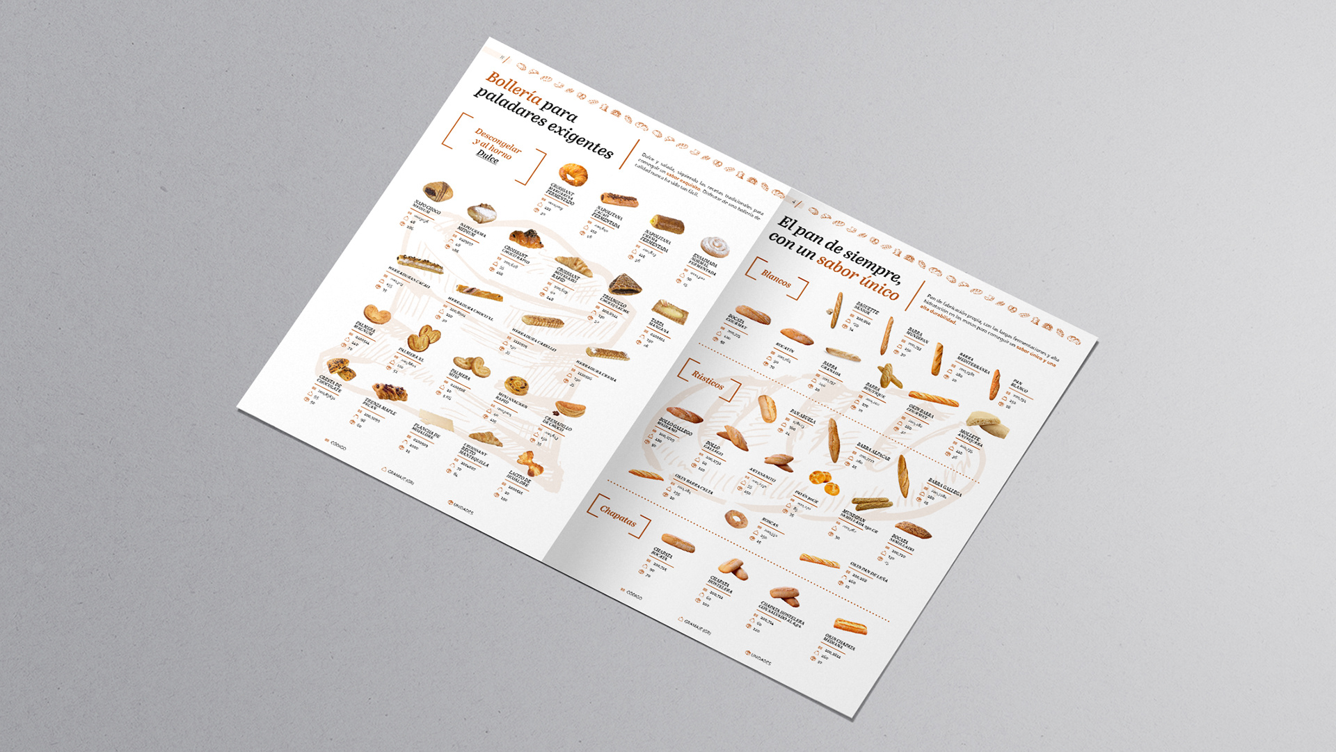 Diseño y maquetación de catálogo para Interbread en colaboración con el equipo de JS Comunicación. Implementación de la línea gráfica, maquetación y edición de imágenes de producto.