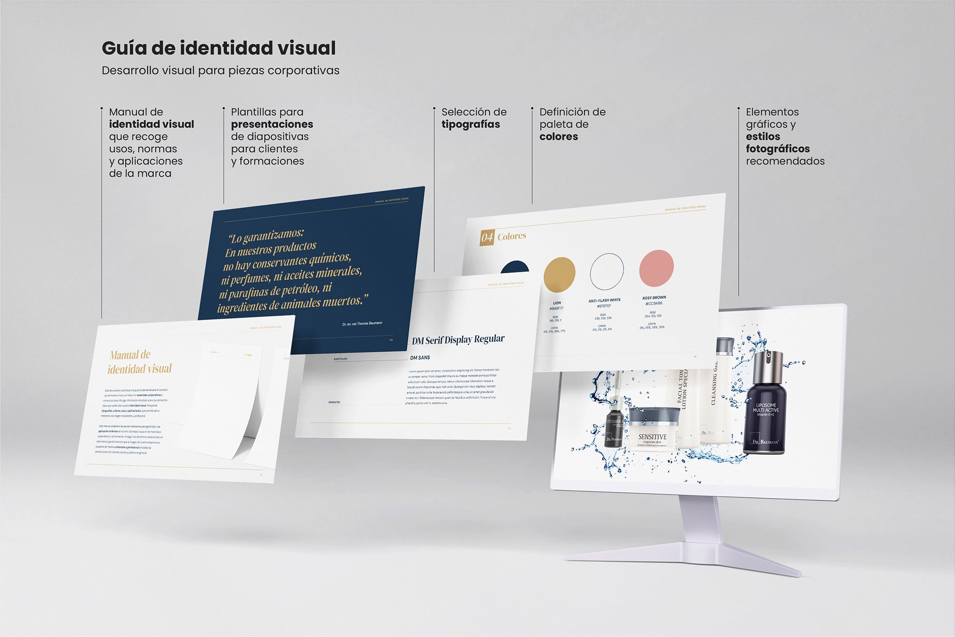 Guía de identidad visual para piezas corporativas, desarrollo de guía de estilo con el objetivo de unificar tipografías, colores, usos y normas de aplicación para todos los materiales gráficos de la compañía en España.