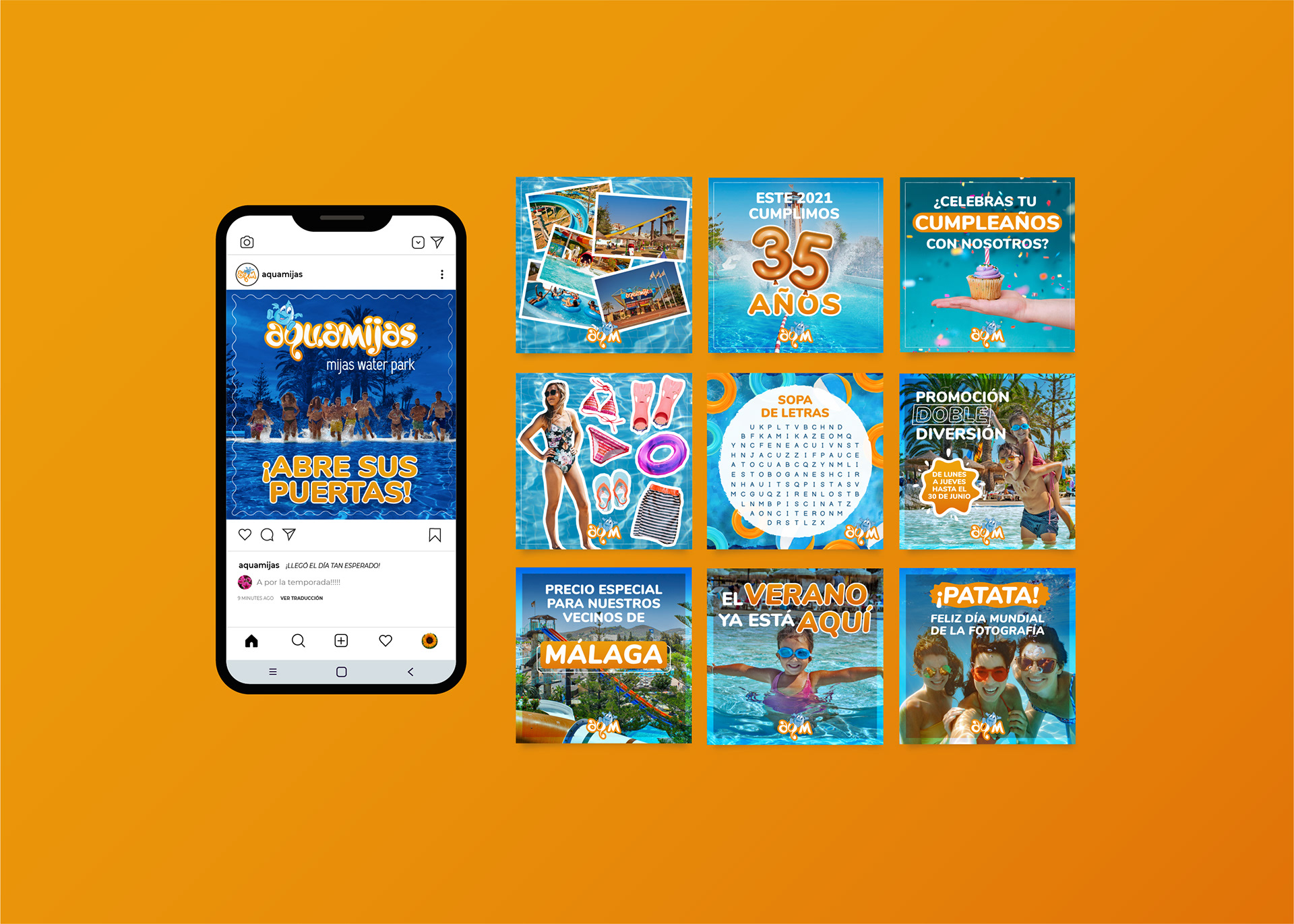 Diseño de posts para instagram para Aquamijas y Aquavera, en colaboración con el equipo de Incógnito.